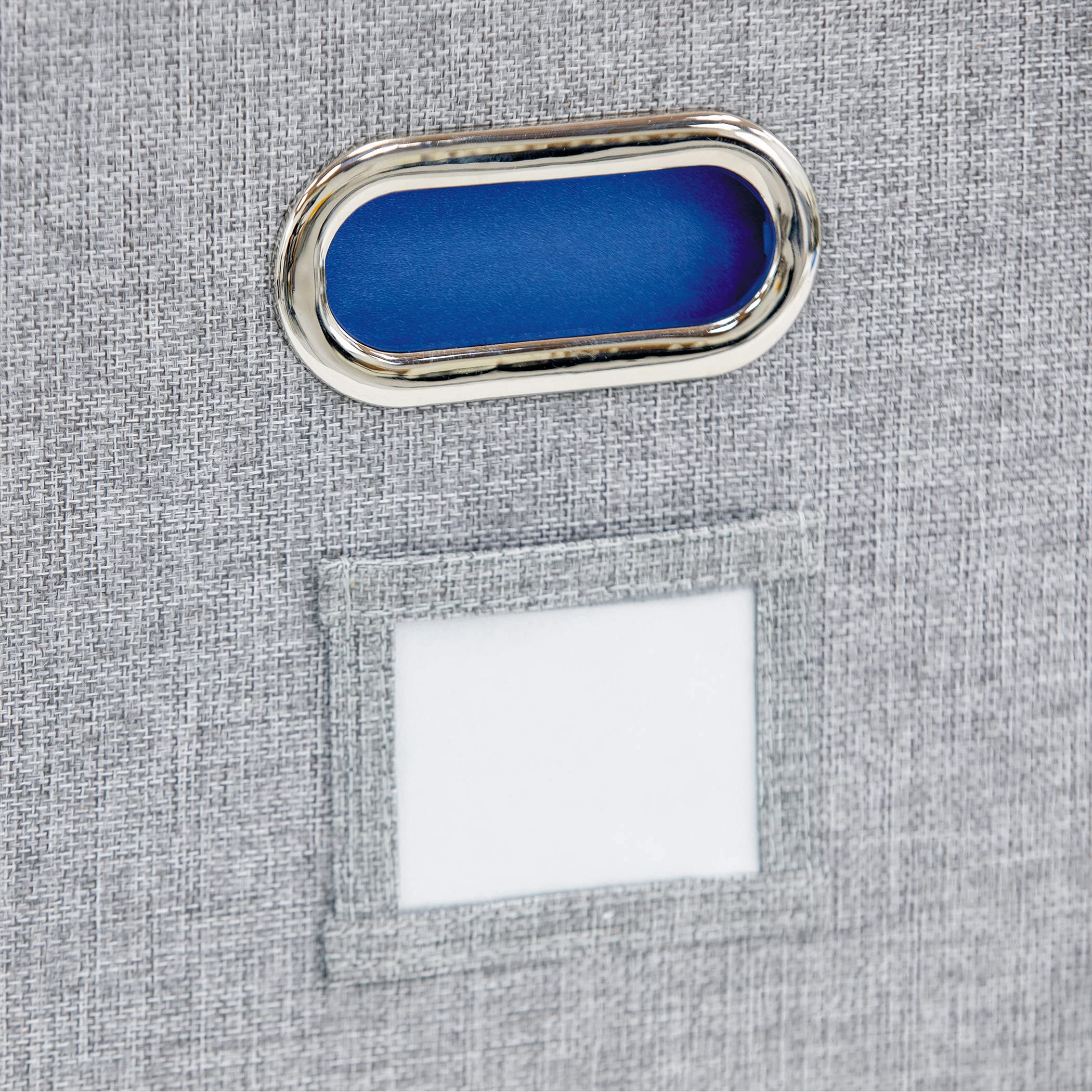 Durable construction: fabric storage boxes constructed with gray linen exterior includes sturdy metal handles for comfortable lifting and white labels for easy identification
